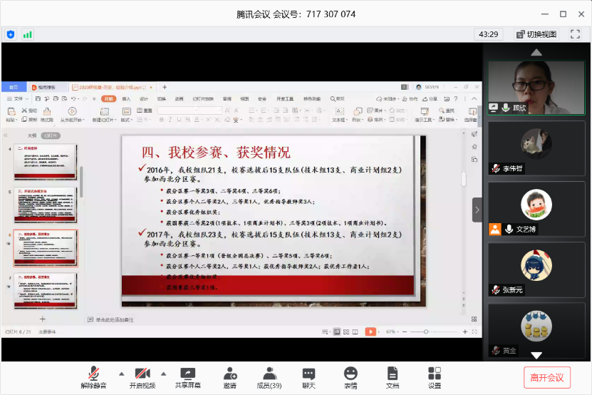 王倩同学结合参加商业计划书专项组的参赛经历,首先对于商业计划书概念、作用、类型构成及核心特征进行讲述,接着解释了参加商业计划书专项组的一些误区,最后详细介绍了自己参加竞赛获奖心得。汤礼颖同学则结合参加技术竞赛组的参赛经历,分别从作品的选题背景、方案论证、系统设计、系统测试、难点与创新点、总结与展望和获奖心得等方面进行讲述。最后两位同学与其他参会同学进行交流,所参赛同学存在的疑惑进行解答,使参会学生更加清楚地了解研电赛流程、竞赛要求及着重点。