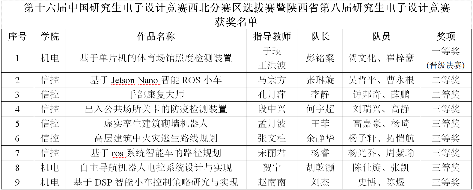 在校内举行了校园选拔赛。经过精心组织、评审考核,最终选拔推荐10支队伍参加陕西省第八届研究生电子设计竞赛暨“兆易创新杯”第十六届中国研究生电子设计竞赛西北分赛区选拔赛;2支队伍直接参加全国网络评选的商业计划书专项赛,网络评审结果将于7月底公布。