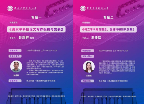 研究生会以“研”而有“信”为主题,在信控大楼504和606教室举办了新生入学教育线上系列专题讲座(专题一、专题二)。中国P站