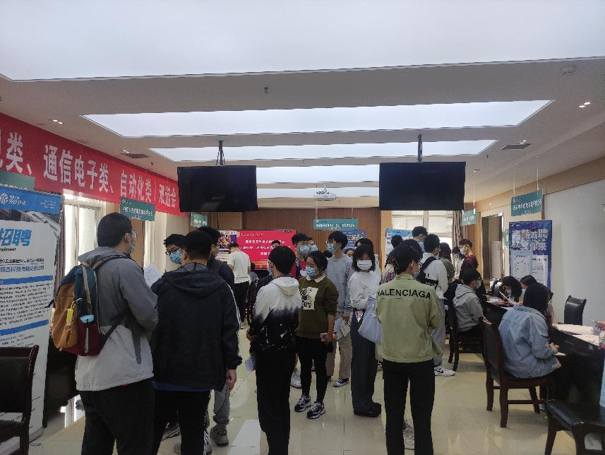 精准就业(计算机类、通信电子类、自动化类)双选会”在草堂校区信控楼504学术交流中心顺利举办。本次双选会邀请了航空工业西安翔迅科技、中国三安建设集团、陕西凌云电器、西安思丹德信息技术、西安中科闻歌科技有限公司等11家信息类学科(专业)相关单位,共提供岗位信息300余个,吸引到超过200余名毕业生参会。