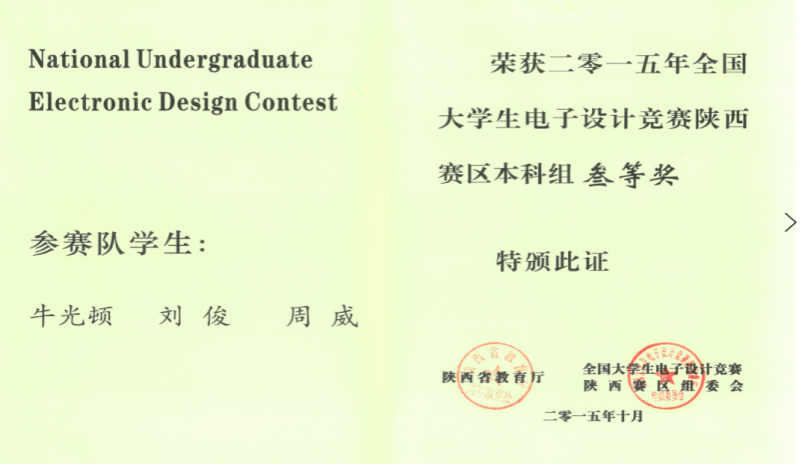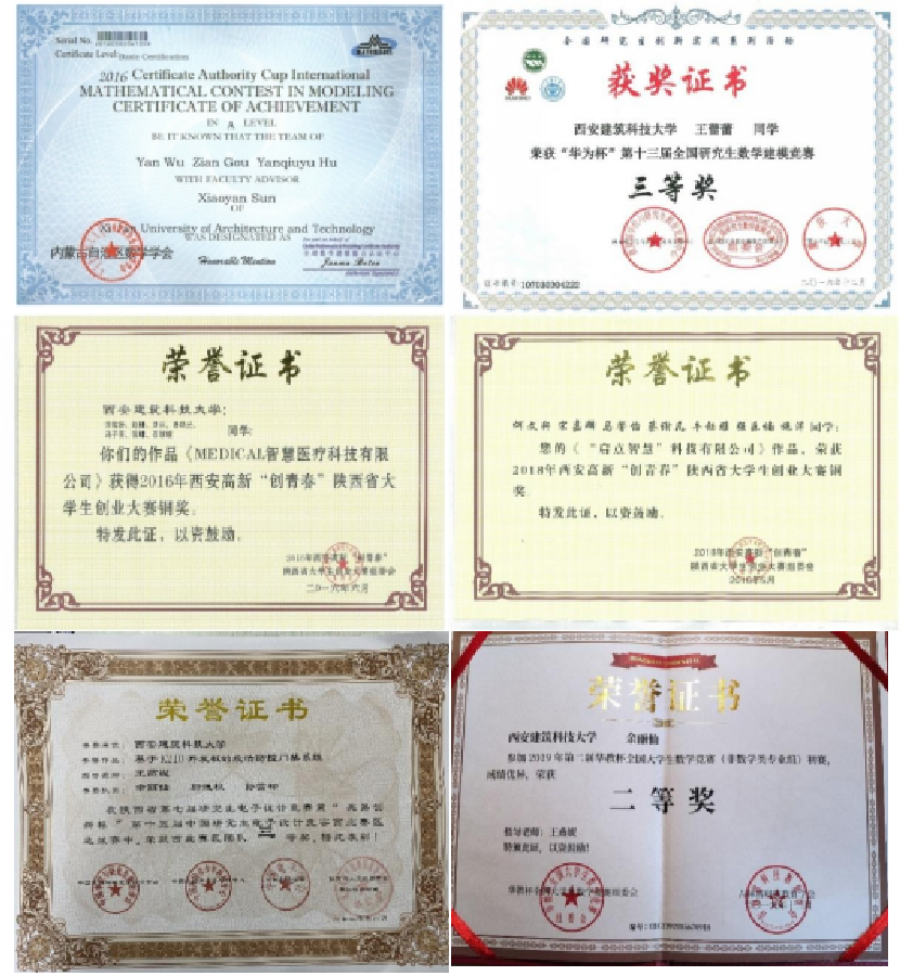 学生部分获奖证书